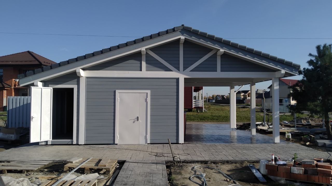 Навес к частному дому для автомобиля ГРИМСТАД