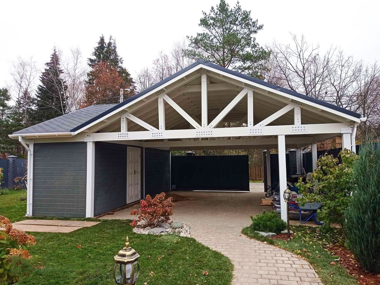 • Навес к частному дому для автомобиля ГРИМСТАД