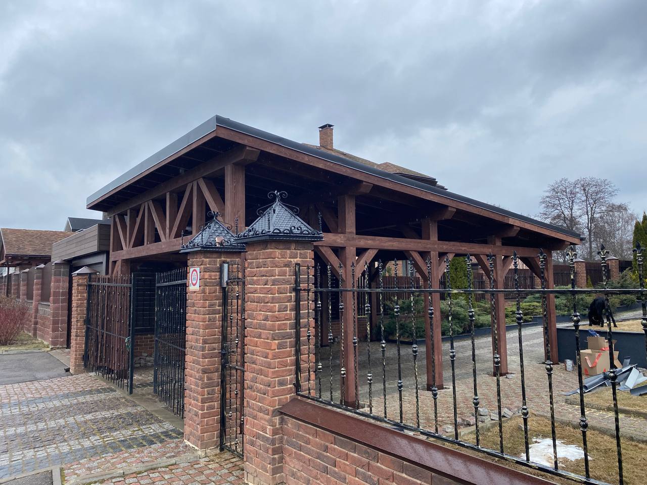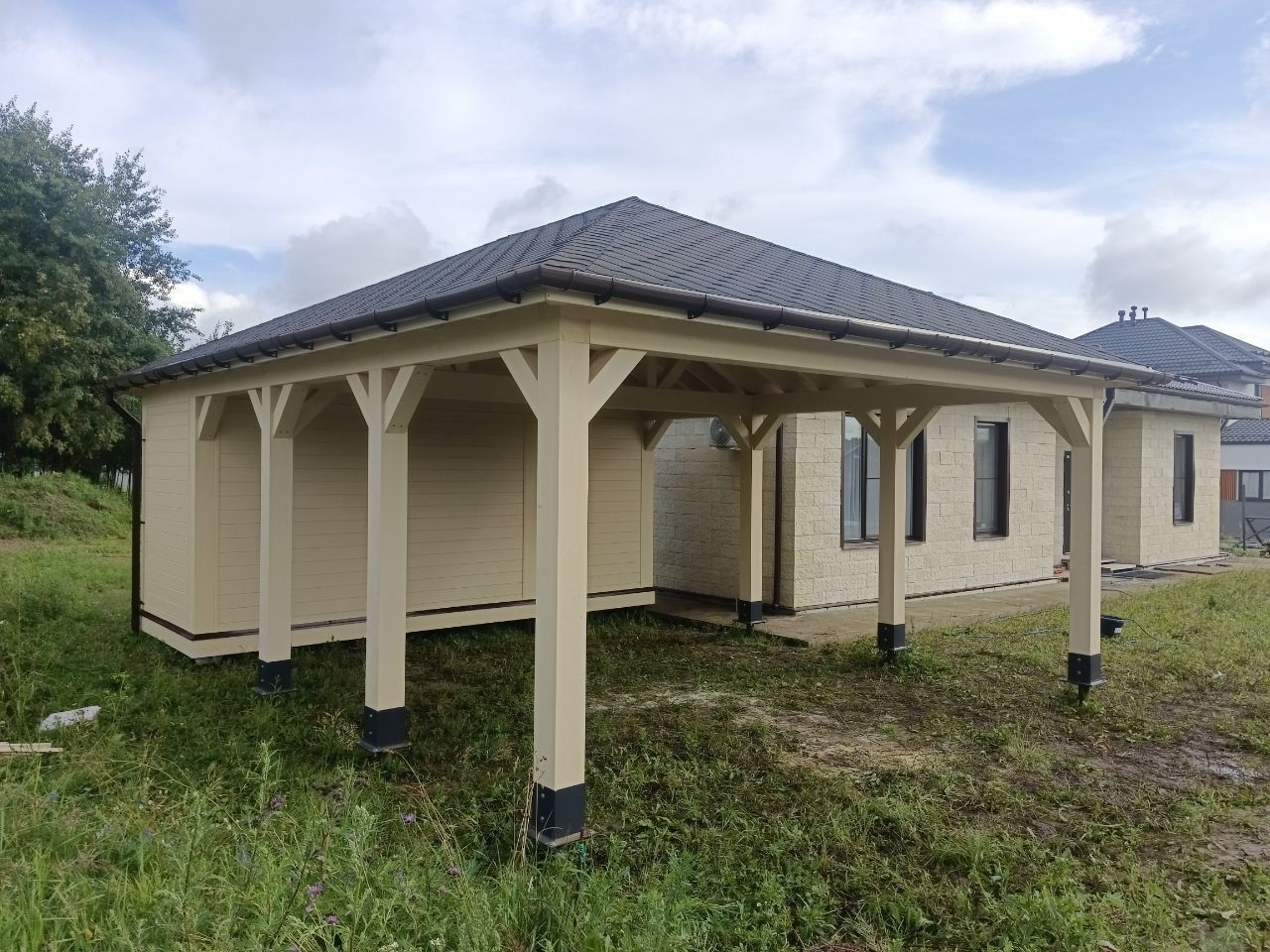 • Навес к частному дому для автомобиля ГРИМСТАД