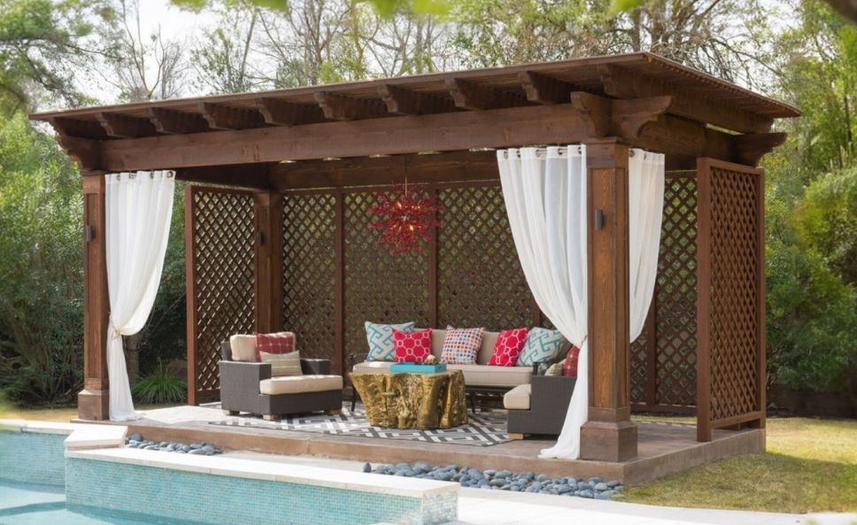 Деревянный навес на загородном участке – очень полезное, а порой и незаменимое сооружение. Он подходит для разных целей: для парковки автомобиля, обустройства зоны отдыха, хранения садового инвентаря, в качестве пристройки к дому. Помимо основного назначения, навес из дерева, как правило, выполняет декоративную функцию, создавая гармонию с домом и окружающей природой. Среди достоинств уличных деревянных конструкций: