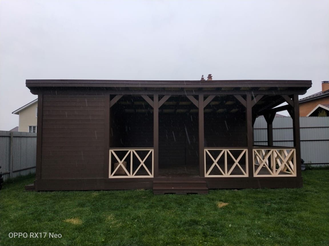 Деревянный навес на загородном участке – очень полезное, а порой и незаменимое сооружение. Он подходит для разных целей: для парковки автомобиля, обустройства зоны отдыха, хранения садового инвентаря, в качестве пристройки к дому. Помимо основного назначения, навес из дерева, как правило, выполняет декоративную функцию, создавая гармонию с домом и окружающей природой. Среди достоинств уличных деревянных конструкций: