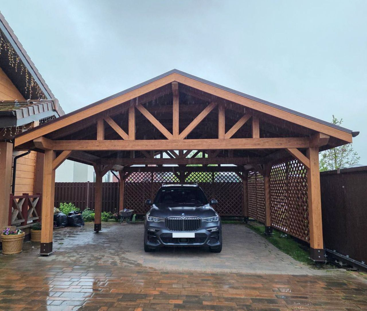 • Навес к частному дому для автомобиля ГРИМСТАД